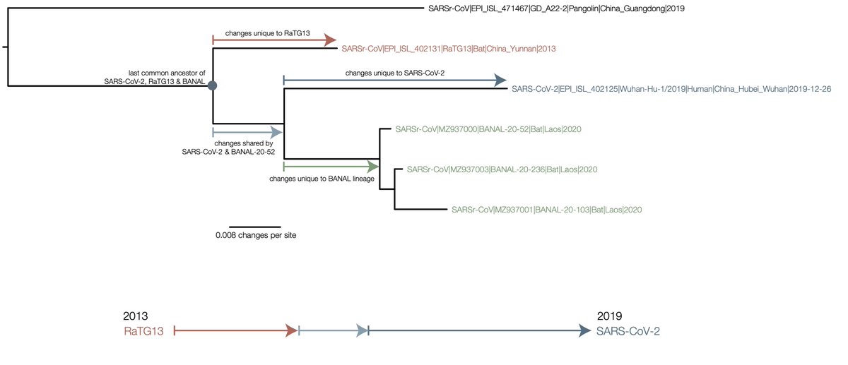 The other way of putting it is the direct evolution of RaTG13 to SARS-CoV-2 would have to give the signal of the phylogenetic tree (i.e., the figure at the bottom of the image).